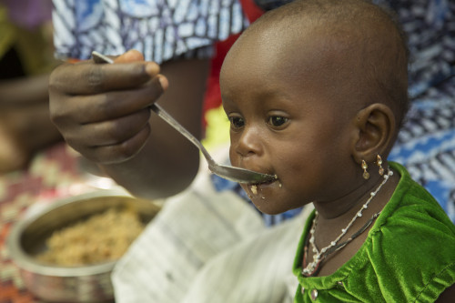 A 1-year-old Senegalese girl, Mane, is fed during a nutrition workshop. Photo by Jake Lyell